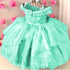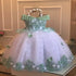 Such a beautiful pearl and embroidery adornment on the top and tailing of the skirt.  This princess dress with delicate lace is luxurious, beautiful, highlighting custom made for your princess.