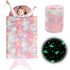 Transform nap time into a magical adventure with our glow-in-the-dark unicorn mermaid tail blanket! Featuring a charming unicorn print, this blanket glows beautifully after just 15 minutes in the light, making bedtime an enchanting experience. Kids can slip inside and feel like a mermaid princess, drifting off to sleep in a sea of dreams. Measuring 60x27 inches, it's the perfect size for children aged 3 and up, offering cozy comfort whether it's for a sleepover, slumber party, or a nap in a tent.