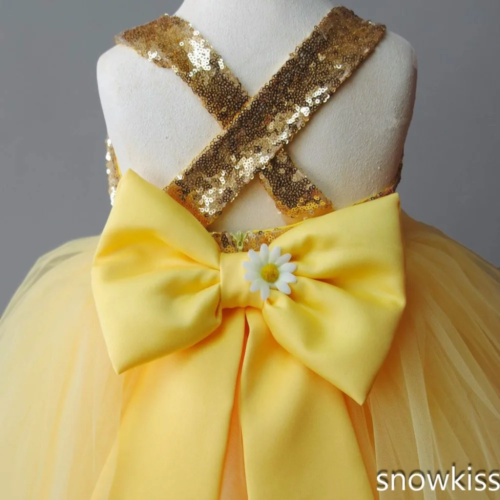 This dress is custom made,this dress is a showstopper .We are speechless at its beauty.The back of the dress has the beautiful criss-cross straps that add to the drama of the dress.That have the cutest yellow bow under them.
