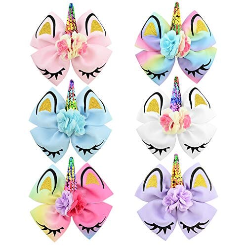 Add a touch of magic to every hairstyle with the Unicorn Flutter Bows—a charming 6-pack of high-quality hair bows designed to keep your little one looking adorable for any occasion.
